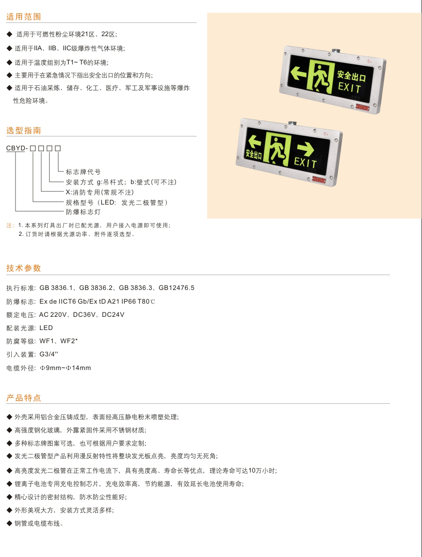 CBYD系列防爆消防應(yīng)急標(biāo)志燈具(IIC tD)(I型)