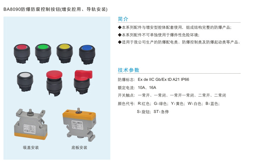 BA8090防爆防腐控制按鈕(增安腔用 導(dǎo)軌安裝)
