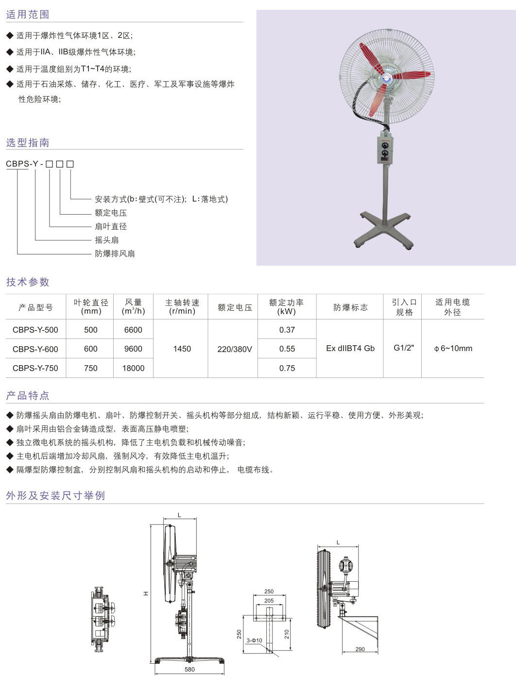 CBPS-Y系列防爆排風(fēng)扇(搖頭式)(IIB)